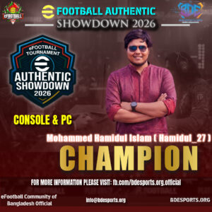 bdesports Change your cover photoUpload Change your cover photoUpload Change your cover photo bdesports This user account status is Approved About About Posts Posts Comments Comments Champion of eFootball Authentic Showdown 2026 ” HAMIDUL ISLAM” 4 weeks ago in: eFootball, Tournament no comments Bangladesh Makes Historic Strides in eFootball Console Qualifiers for FIFAe World Cup 2025 5 months ago in: eFootball, eFootball Co-Op, FIFAe World Cup no comments Bangladesh eFootball Championship 2025 Final 12 months ago in: eFootball, Tournament no comments Bangladesh eFootball Championship 2025 1 year ago in: eFootball, eFootball Co-Op, Tournament no comments Champions of Nations 2024: Champions 1 year ago in: Champion of Nations 2024, eFootball, Tournament no comments CHAMPION OF NATIONS 2024 2 years ago in: Champion of Nations 2024, eFootball, Tournament no comments Champion of eFootball Twin Strikers Championship 2024Champion of 2 years ago in: eFootball, eFootball Co-Op, Tournament no comments eFootball Twin Strikers Championship 2024 2 years ago in: eFootball, eFootball Co-Op, Tournament no comments BANGLADESH ROAD TO IESF (eFootball) Champion 2 years ago in: eFootball, Other Esports News no comments eFootball Play Station Championship 2024 2 years ago in: eFootball, Tournament no comments load more posts
